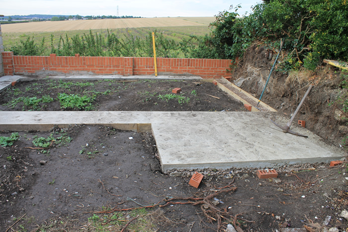 The first step is to mark out the area and then lay concrete pathways all around. There is also a slab for a shed which will form a part of the final build.